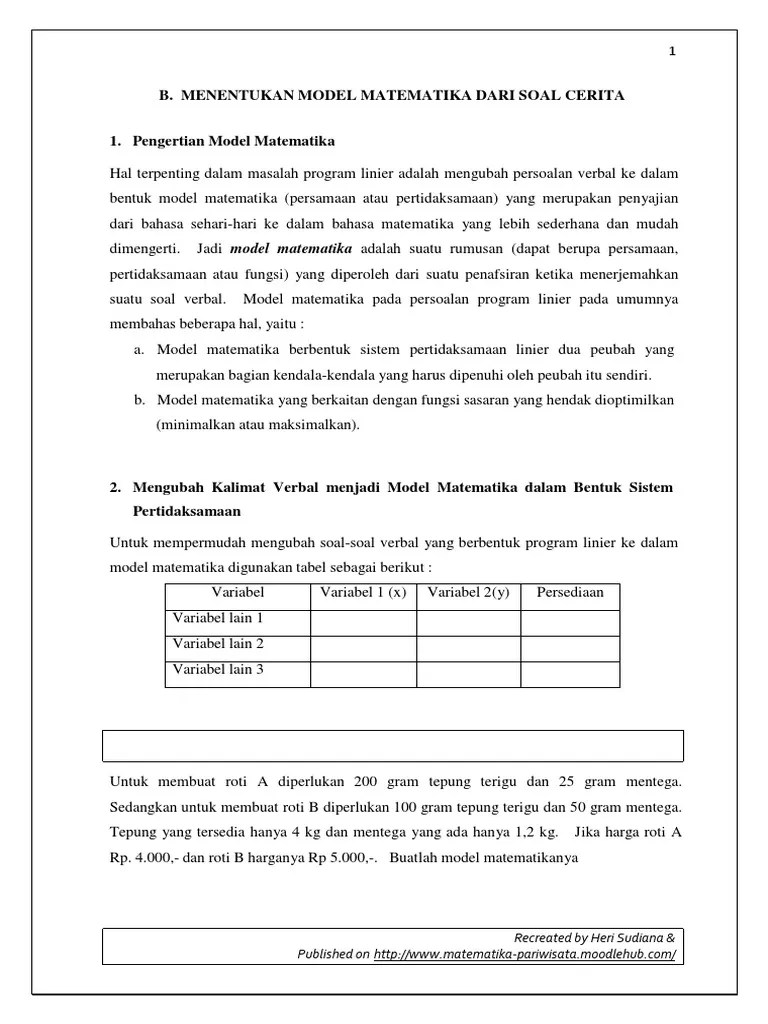 B menentukan model matematika dari soal cerita contoh soal cerita spldv brainly co id penerapan konsep program linear dalam kehidupan sehari . Membuat model pertidaksamaan dari soal cerita. Harapan saya adalah video ini . Berikut ini adalah latihan untuk mengubah soal cerita menjadi model matematika. Seperti mengubah suatu soal cerita menjadi model matematika yang lebih.